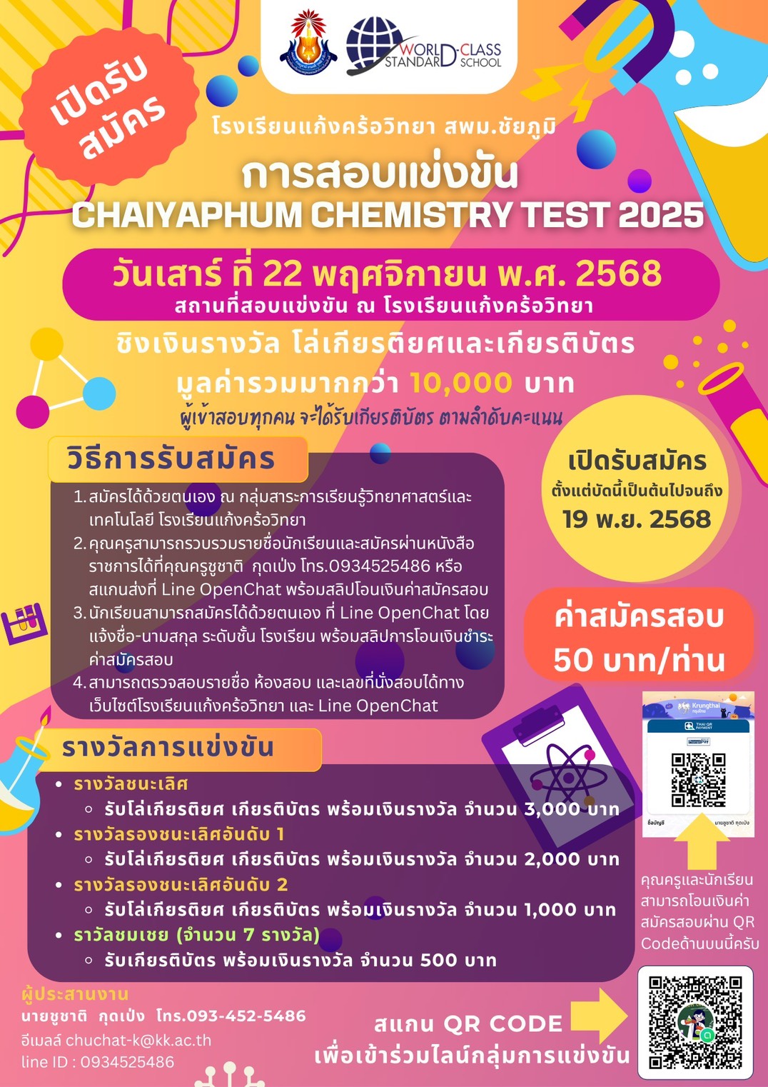 รายชื่อผู้เข้าสอบ chaiyaphum chemistry test 2025