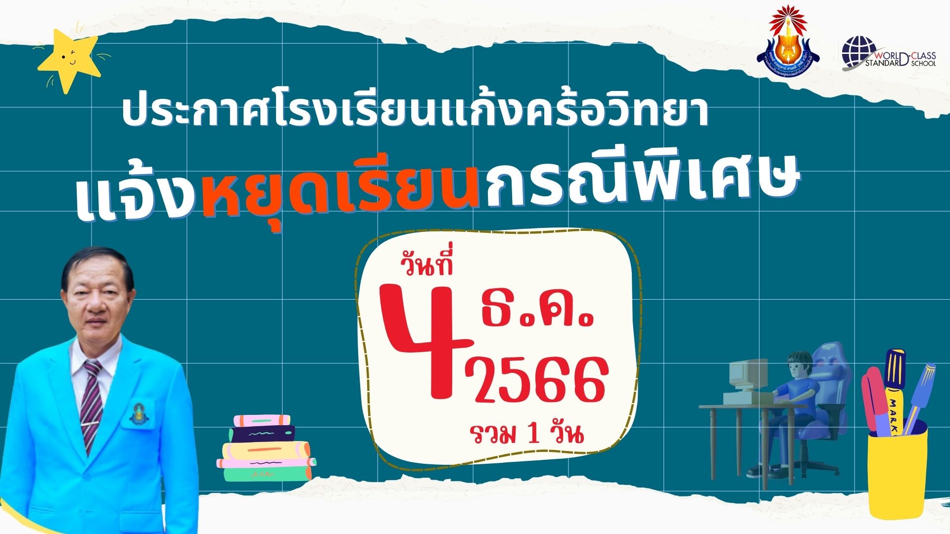 แจ่งหยุดเรียนกรณีพิเศษ ในวันที่ 4 ธันวาคม 2566
