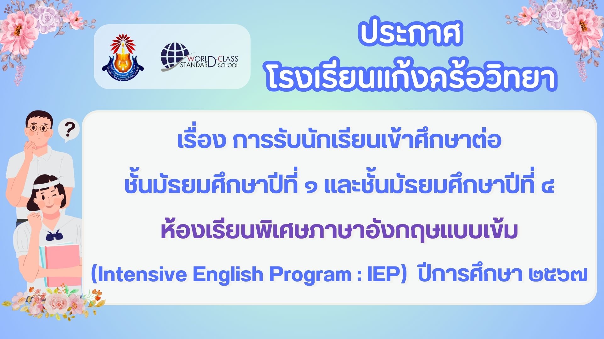 การรับนักเรียนเข้าศึกษาต่อชั้นมัธยมศึกษาปีที่ ๑ และชั้นมัธยมศึกษาปีที่ ๔ ห้องเรียนพิเศษภาษาอังกฤษแบบเข้ม (Intensive English Program : IEP) ปีการศึกษา ๒๕๖๗